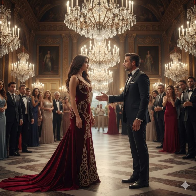 كانت القاعة الكبرى في الفندق تتلألأ كأنها قصر من الكريستال. الثريّات المهيبة تتدلّى من السقف، تعكس ضوءها على الجدران المذهّبة وفساتين الضيوف الأنيقة. وفي وسط هذا البذخ كلّه، كانت كلارا، عاملة التنظيف البسيطة، تقف متوتّرة وهي تمسك مكنستها بيدين مرتجفتين. عملت هنا خمس سنوات، تحملت خلالها ضحكات الآخرين وتعليقاتهم الجارحة، أولئك الذين لم يرفعوا أعينهم يومًا ليروا الإنسان بداخلها.